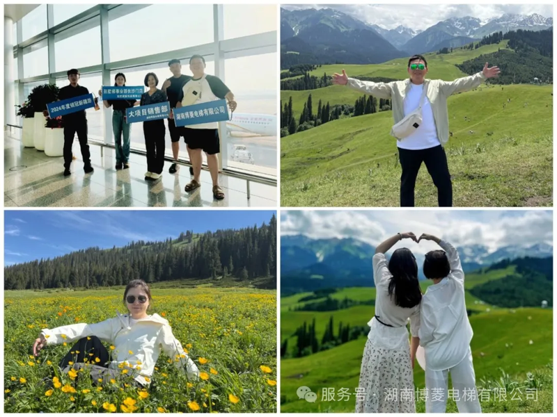 巅峰团队,星光璀璨博菱电梯五位销售尖兵,分别在别墅梯、工程梯、直销、渠道、市场开拓等赛道不断突破,勾勒出博菱的 “冠军基因”: 他们不仅是业绩的创造者,更是湖南博菱电梯“专业专注,成就共赢”价值观的践行者。 新疆的7天旅途,是视觉与心灵的双重盛宴旅程从乌鲁木齐启程,首站直奔天山天池,天池的碧蓝湖水倒映着雪山,仿佛穿越至神话中的浪漫场景。 随后,团队抵达被誉为“大西洋最后一滴眼泪”的赛里木湖,270°环湖漫游,湖水与天光相融,美得令人屏息。 午后漫步薰衣草田,紫色花浪随风起伏,浪漫气息扑面而来